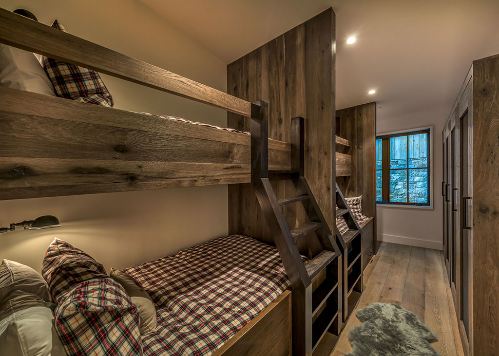A complete makeover, from inside to out. We recreated this Martis Camp home from simple to sublime with the improved look and feel of a fresh contemporary design. The old garage was redesigned as a media room, and a large 3-car garage was added. The front room and kitchen evolved into bedrooms, and a new kitchen with unique cabinetry was created. Arrive through a pivot door entrance into exposed steel and wood with soft natural colors throughout. A new and spacious master bedroom with a fireplace and walk-in closet was a welcome addition. Weiland pocket glass doors separate the living space from the expansive patio, including a fire pit and spa area.